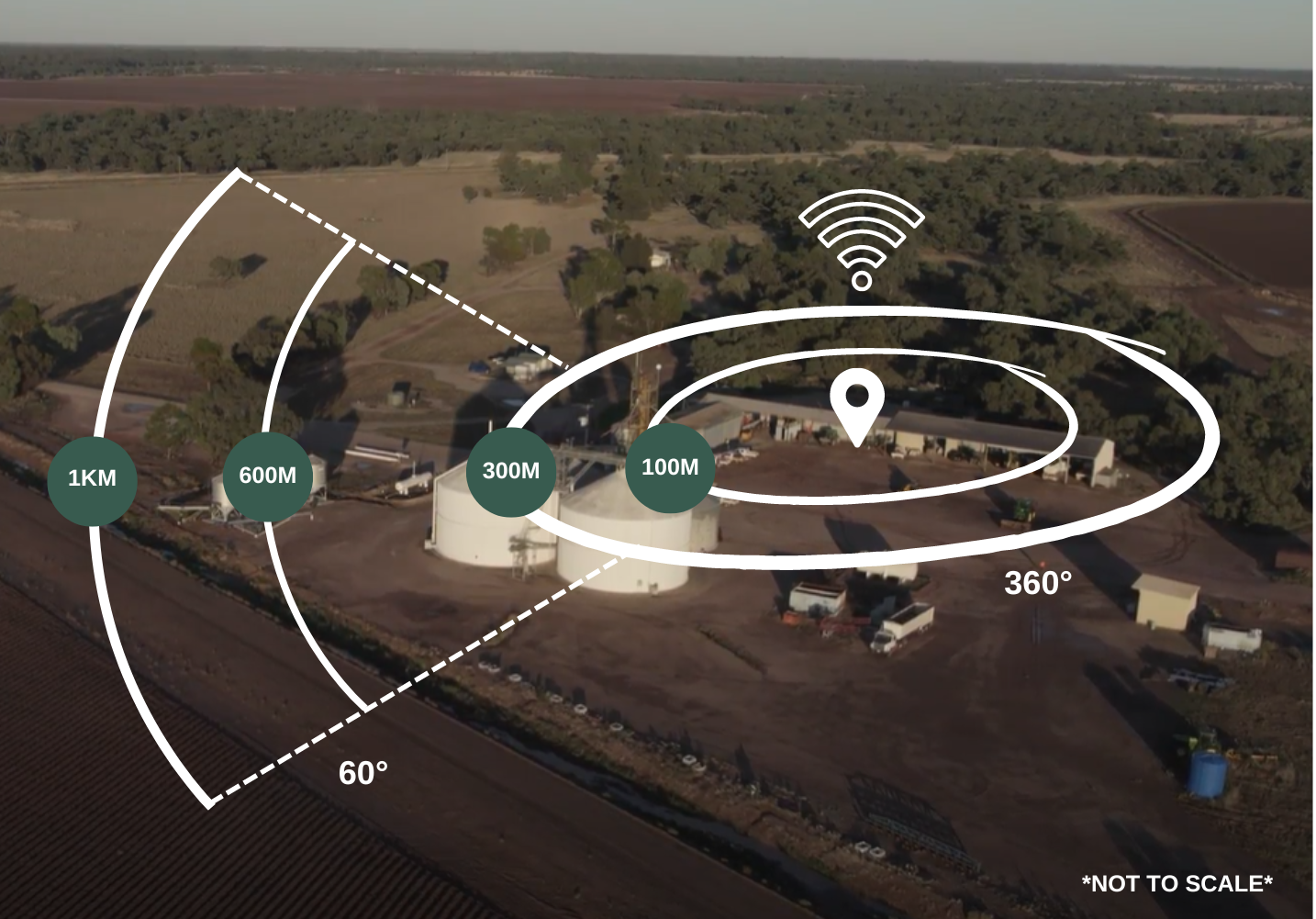 Land Watch can extend the Wi-Fi coverage to include the shed and yards with up to a 300m radius, or we can go even further, up to 1km, within a narrower 60° coverage area.